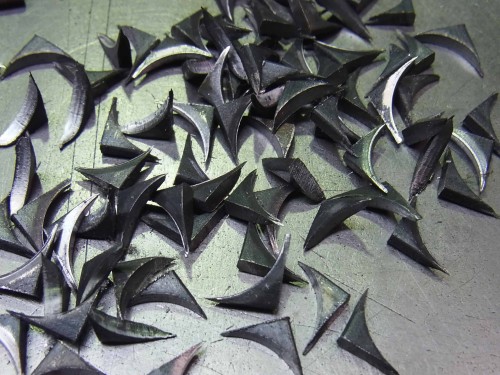 © 2011 有限会社千葉工作所. All rights reserved. ツチメウチ 16 Aug ’11 うちは鍛造機がないので手で打ちます。 両端を丸く落として 切り落とした端材は撒菱にも使えます。