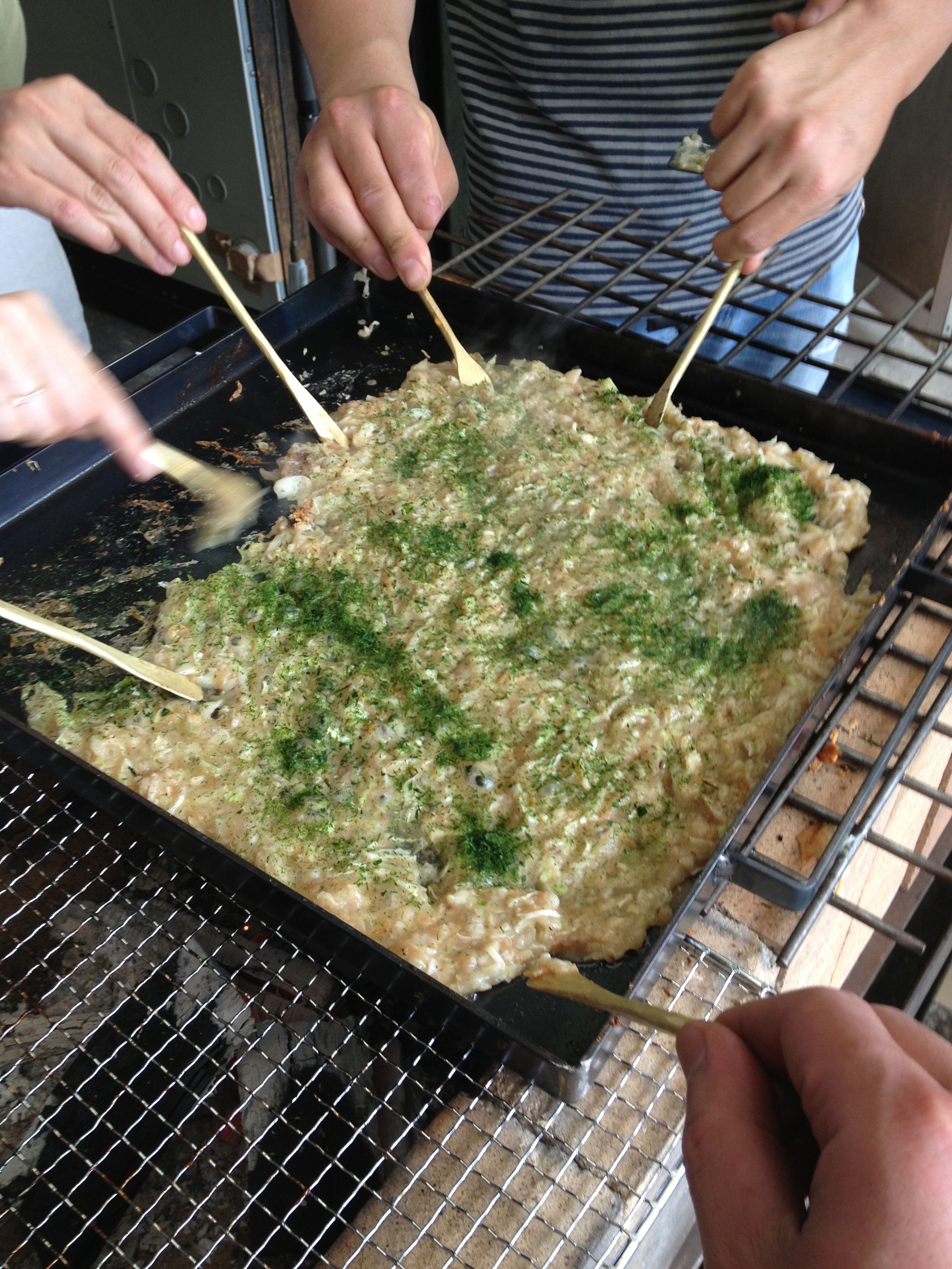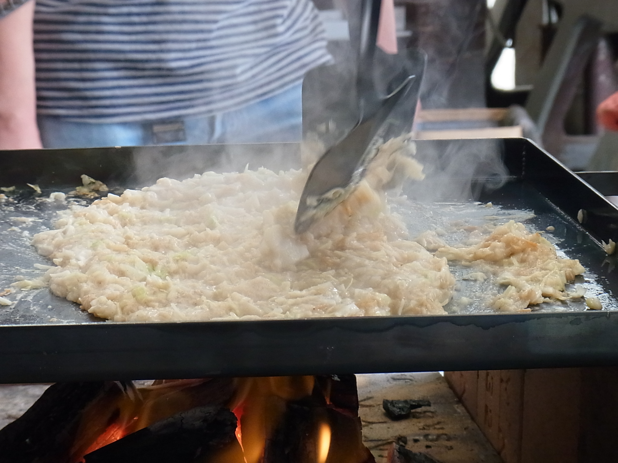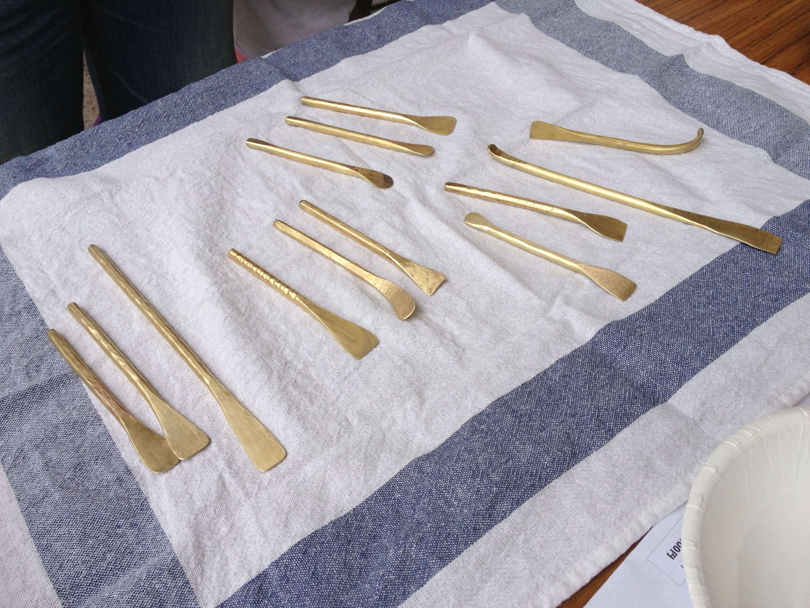 真鍮でもんじゃ焼用ヘラを作ってもんじゃ焼きを食す、というワークショップ。