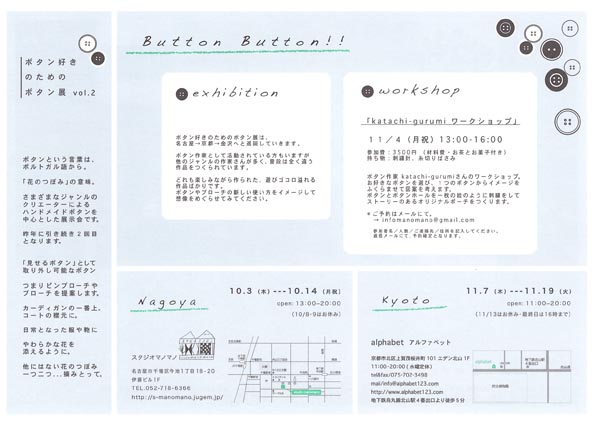 © 2013 有限会社千葉工作所. All rights reserved. ボタン好きのためのボタン展 22 Sep ’13 参加します。 名古屋→京都→金沢へと巡回します。 是非お越し下さい。 什器も作りました。