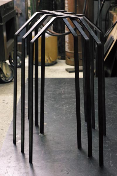 スツール脚用の材料曲げ。 カッコよくなると思います。