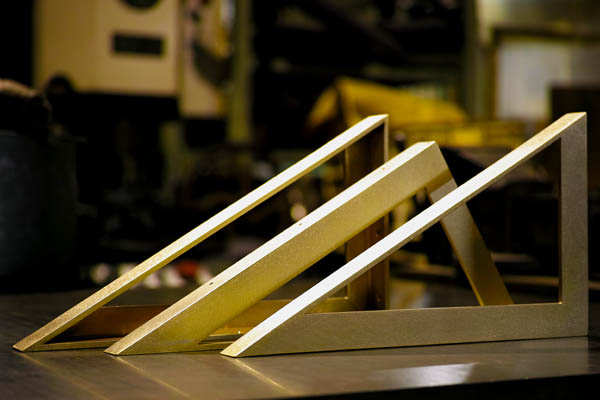 カウンターテーブルの真鍮棚受。